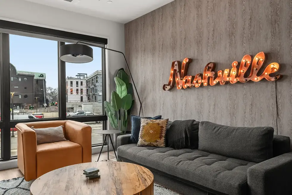 This West End luxury condo building is perfect for a couple or a group traveling to Nashville. It’s near Vanderbilt, Belmont, and Centennial Park — a tranquil location just 8 minutes to Broadway. Enjoy a pool, gym, free parking, and private balconies. We offer 4 two-bedroom condos here.